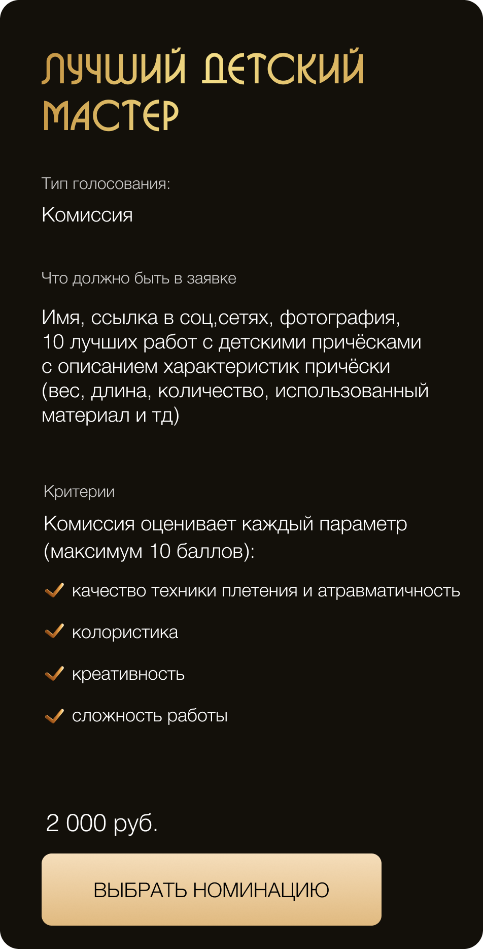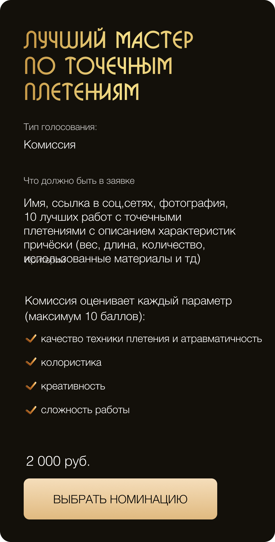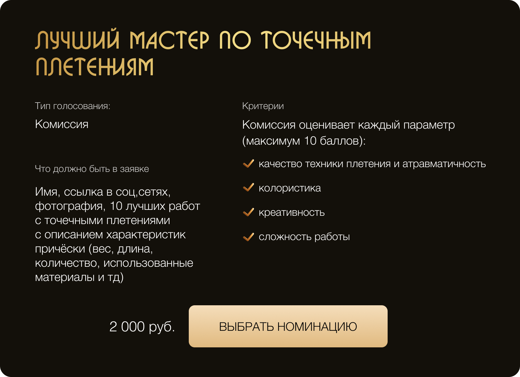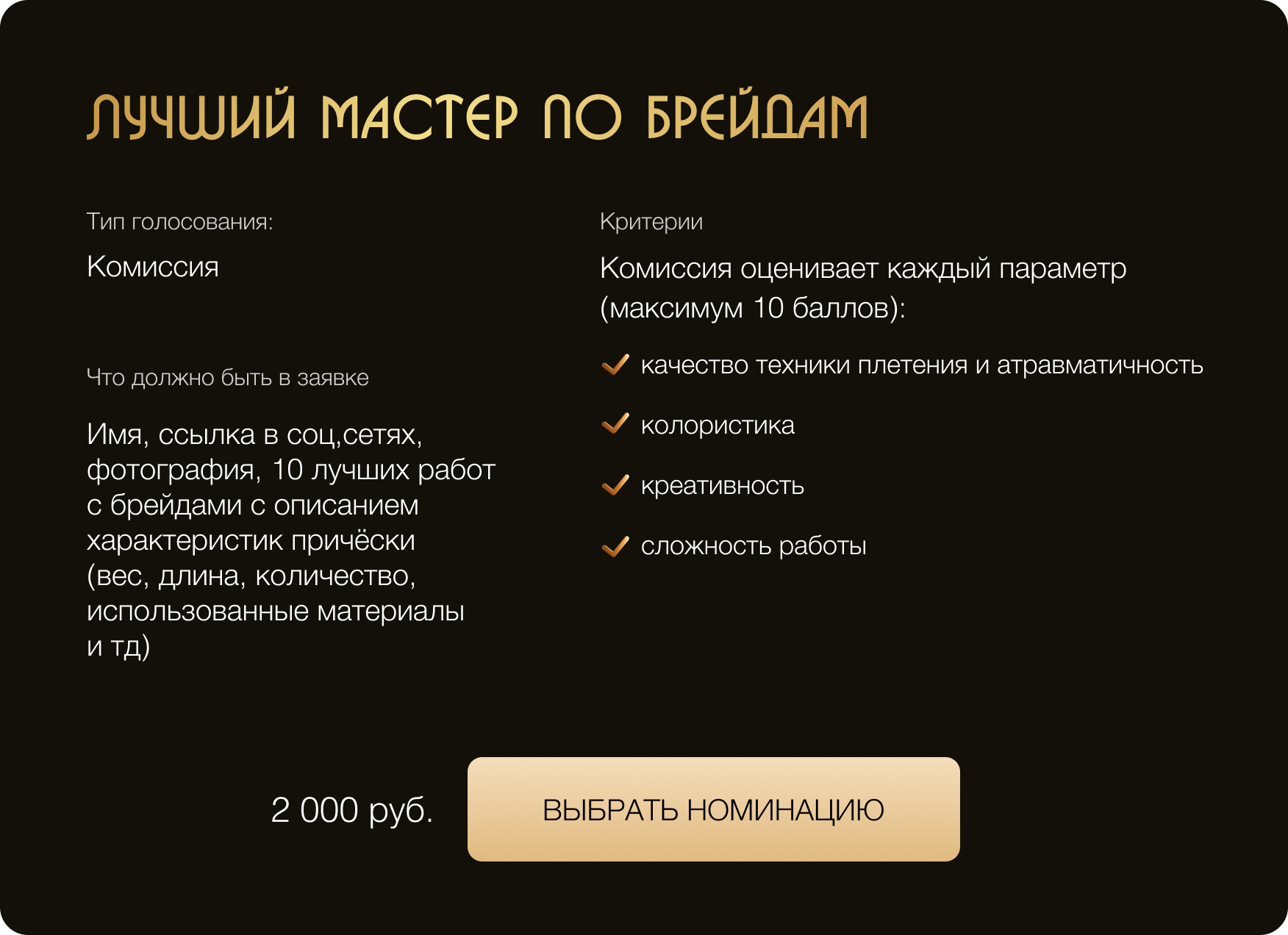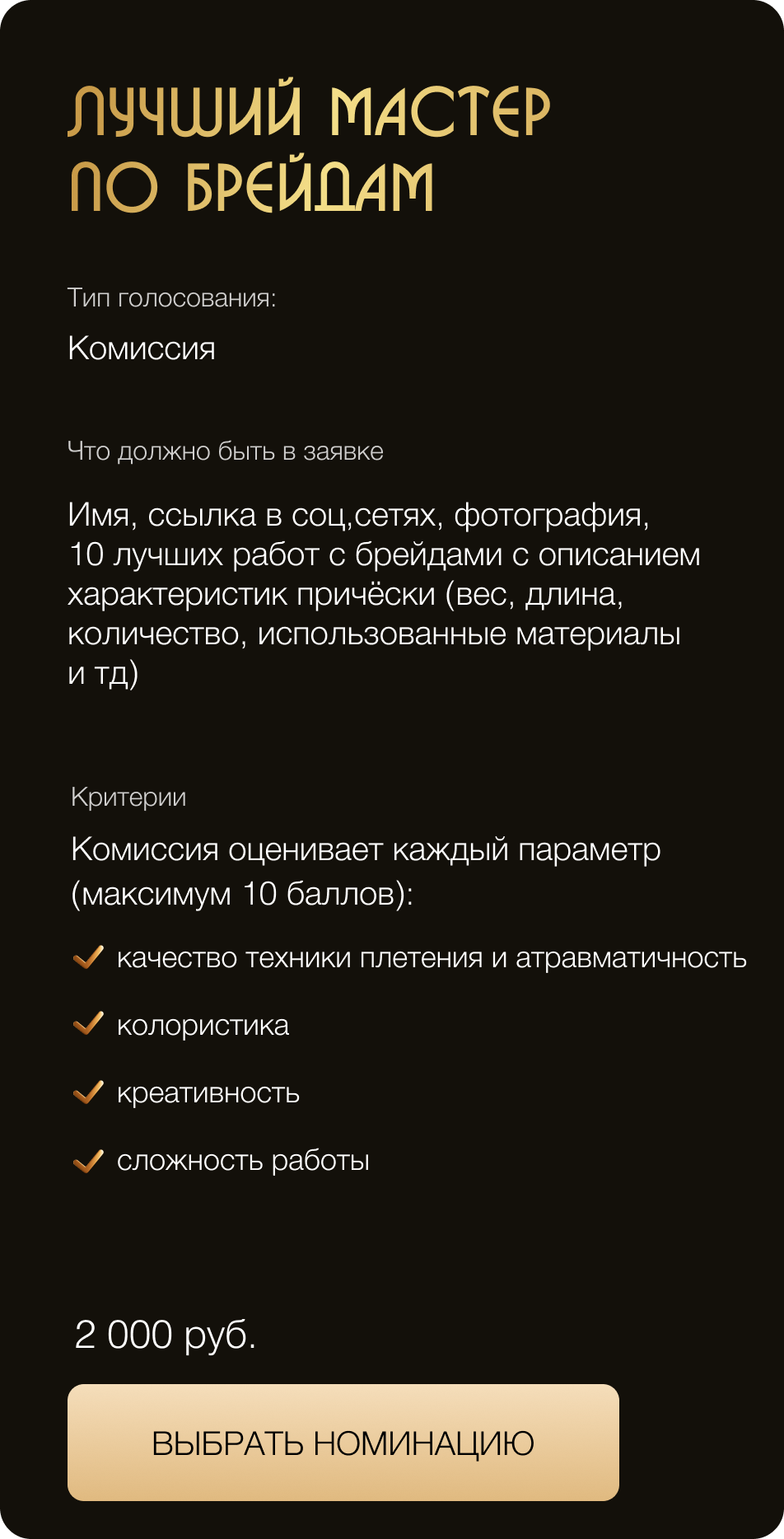Премия создана с целью выявить «‎лучших из лучших»‎ среди мастеров разной квалификации и опыта (от начинающих до гуру мастеров), познакомить участников с профессиональным мнением коллег и последними достижениями индустрии брейдинга, а также привлечь внимание клиентов.