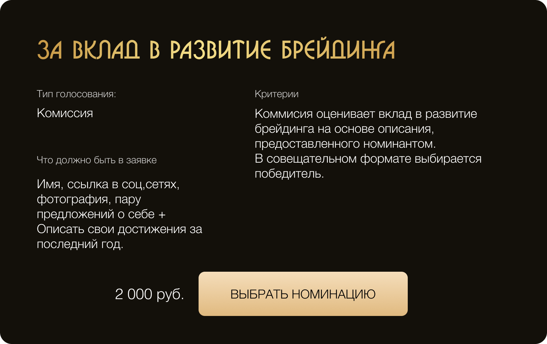 Во время участия в премии открываются широкие возможности для взаимодействия с партнёрами и коллегами сферы брейдинга.