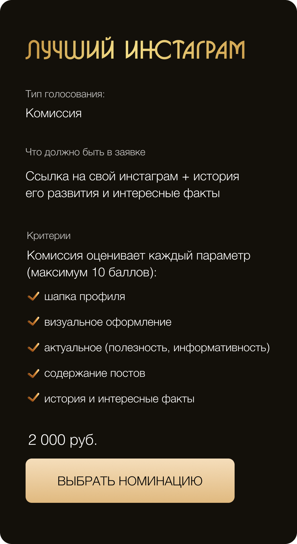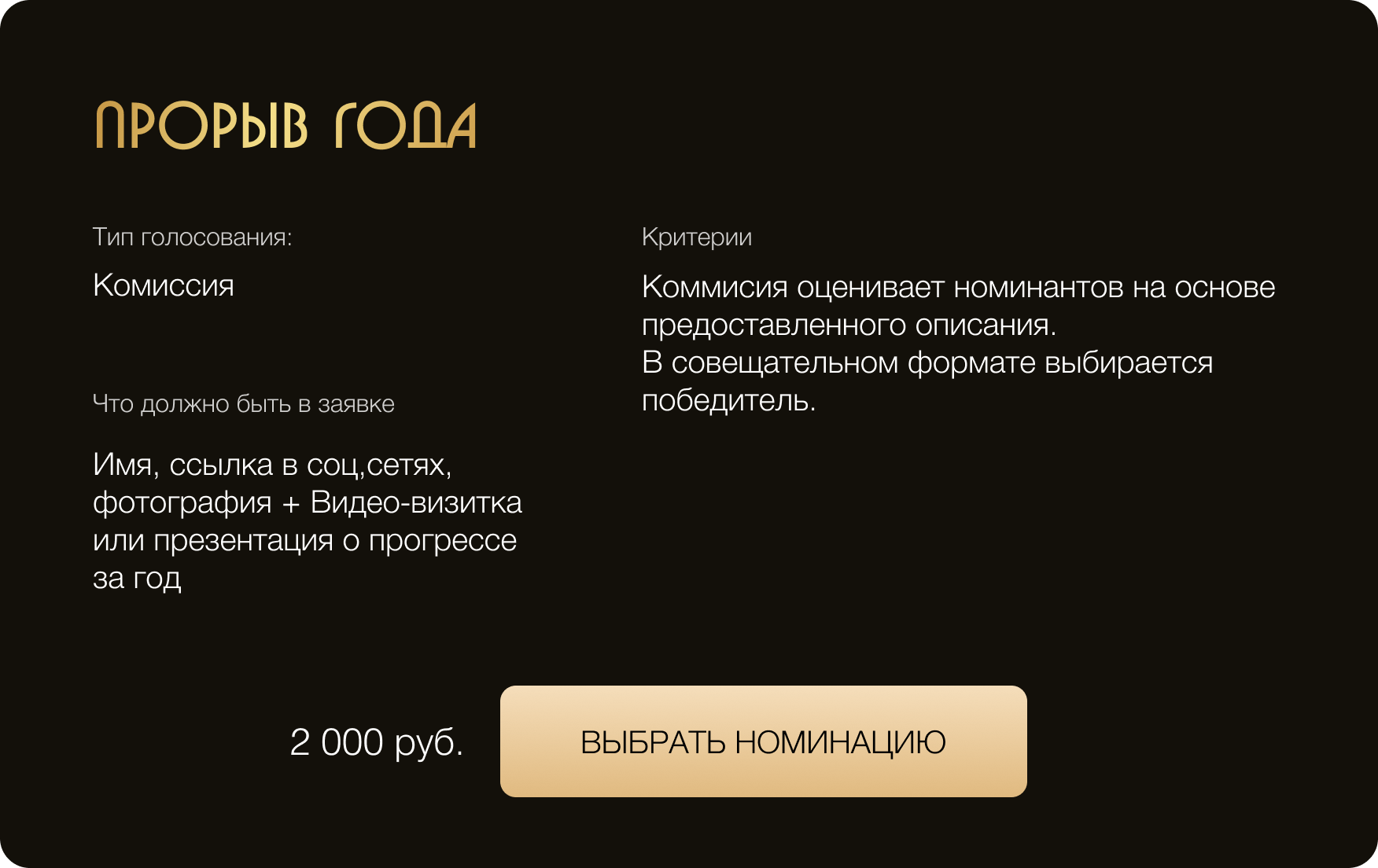 У номинантов появляется прекрасная возможность рассказать о себе, обсудить вопросы развития бизнеса с коллегами, продемонстрировать опыт и поделиться достижениями, укрепив свой статус и подтвердив авторитет.
